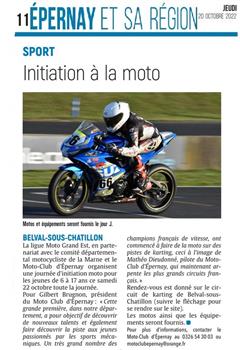 la Journée d'initiation Moto organisée par le Moto-Club d'Epernay , la Ligue Motocycliste Grand Est , la Fédération Française de Motocyclisme et le Comité Départemental Motocycliste de la Marne au Karting de Belval/s Châtillon, des jeunes ravis et une météo excellente. Merci aux 97 participants et aux visiteurs qui ont permis que cette première soit une réussite... nous espérons pouvoir refaire de même régulièrement, restez connectés.