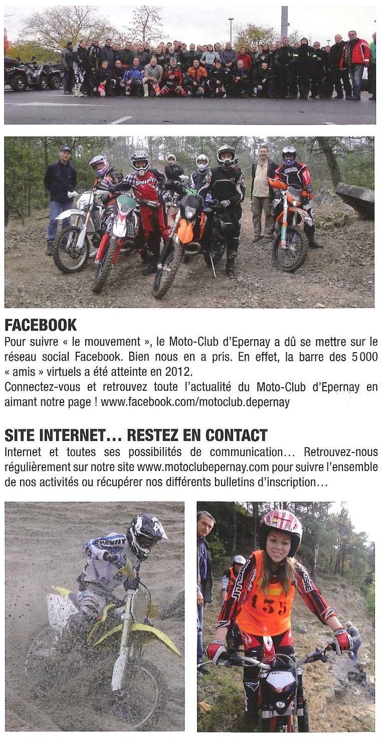 Au Moto-Club d'Epernay, bien que "chevauchant" des mécaniques différentes, les passions sont nombreuses. Ansi, le club, pour satisfaire toutes les passions, est composé de plusieurs sections, bien sûr, toutes ayant un rapport avec la moto et le quad.